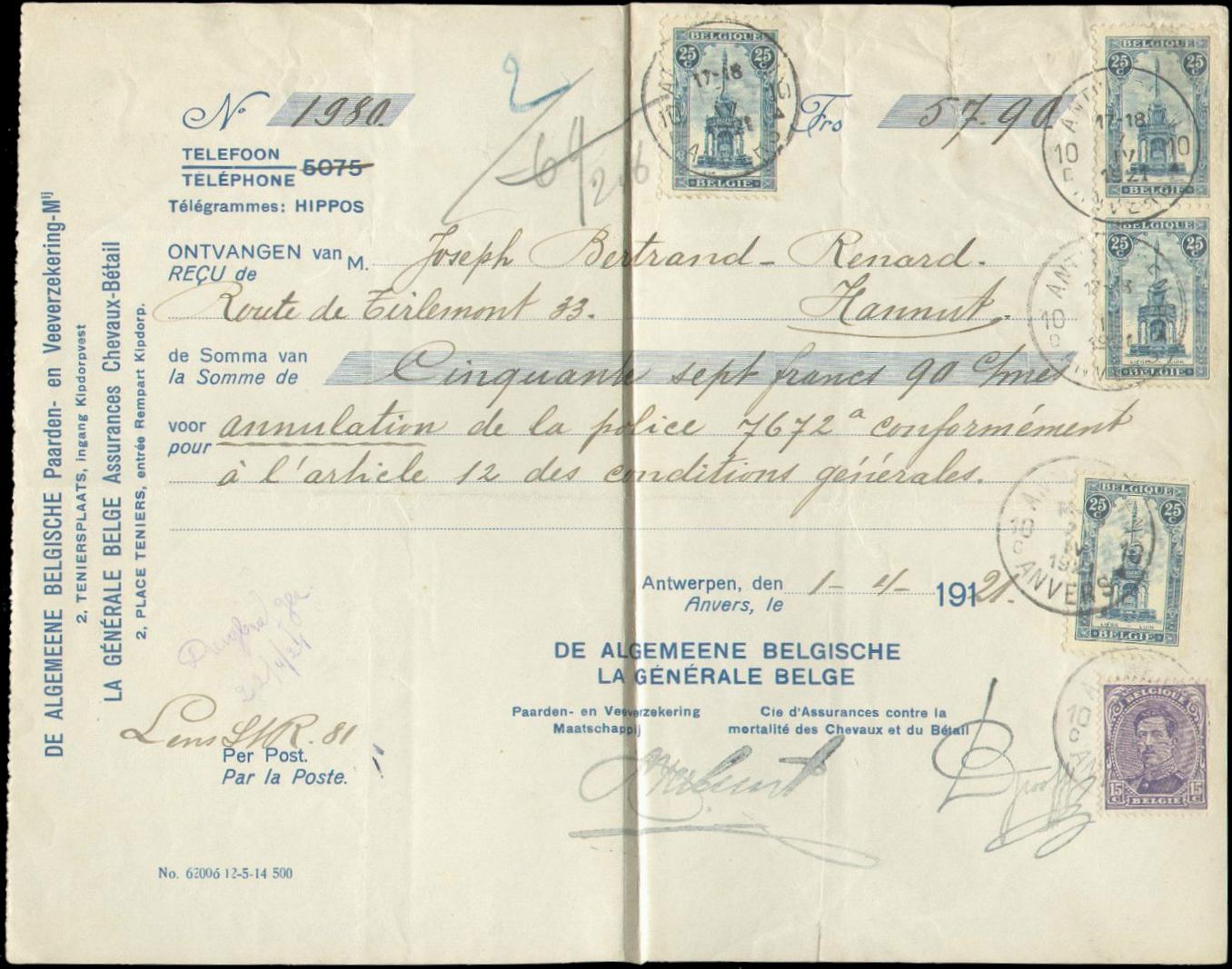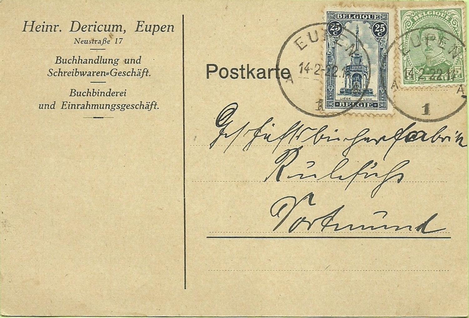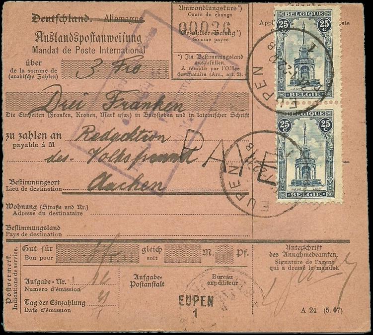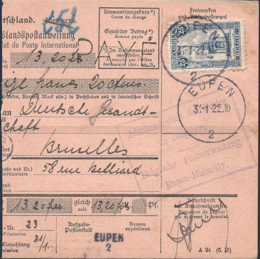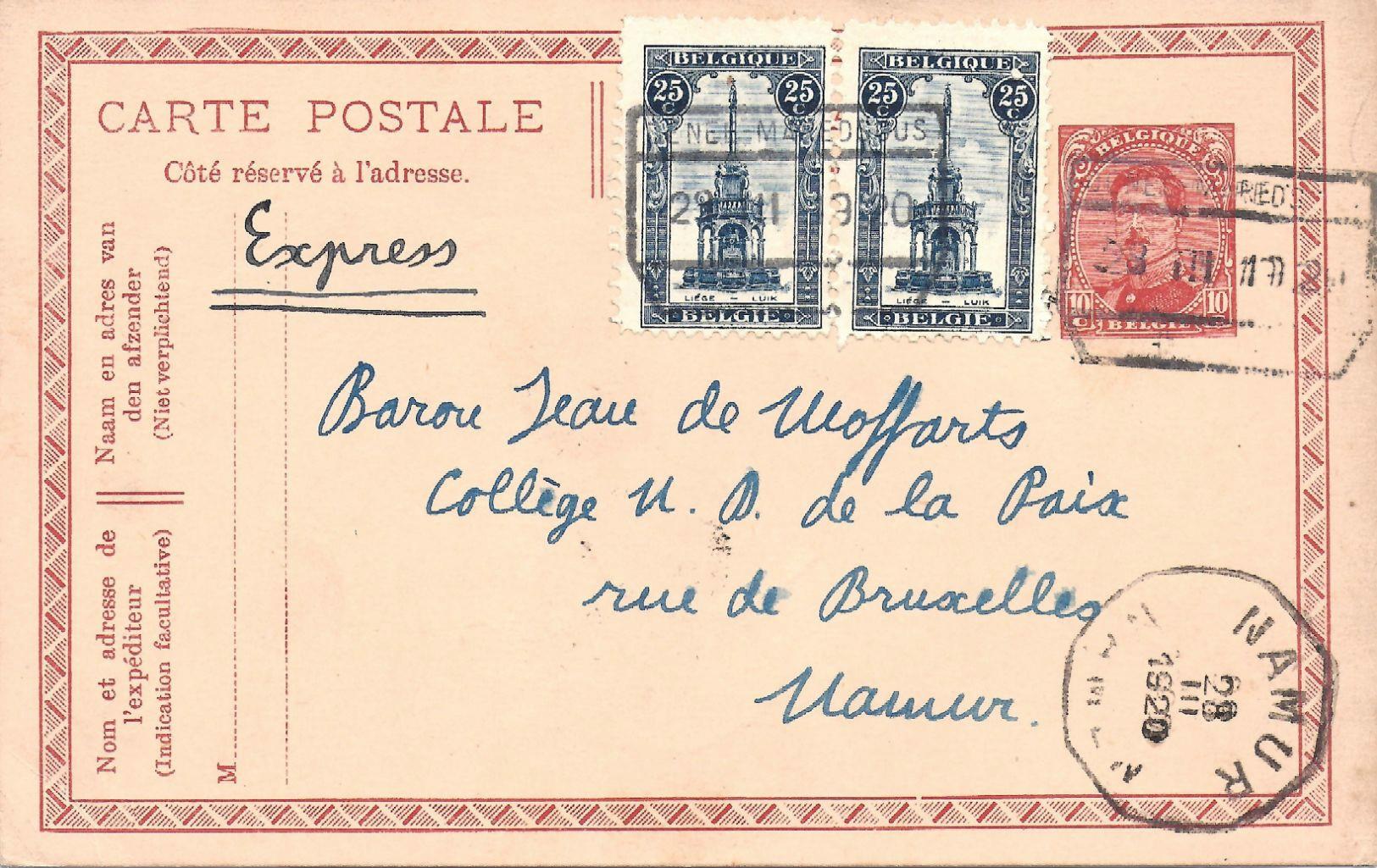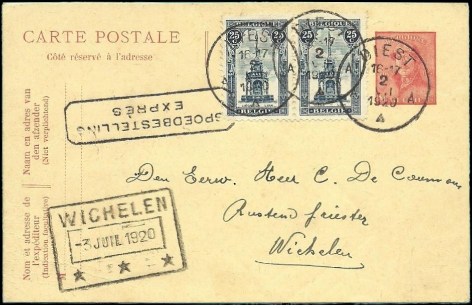 BACK TO THE BELGIUM ENTIRE 1919 YEAR STAMPS MENU