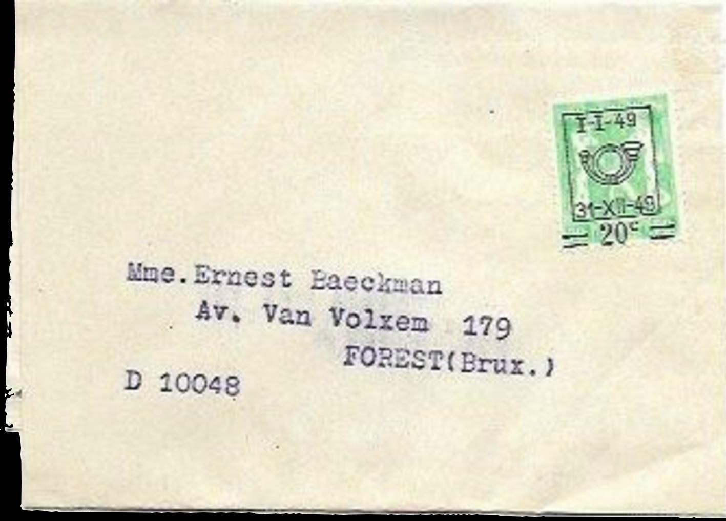 BACK TO THE BELGIUM ENTIRE 1949 YEAR STAMPS MENU