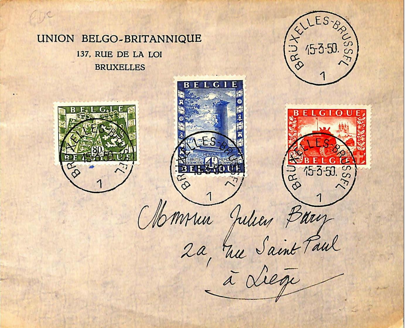 BACK TO THE BELGIUM ENTIRE 1950 YEAR STAMPS MENU