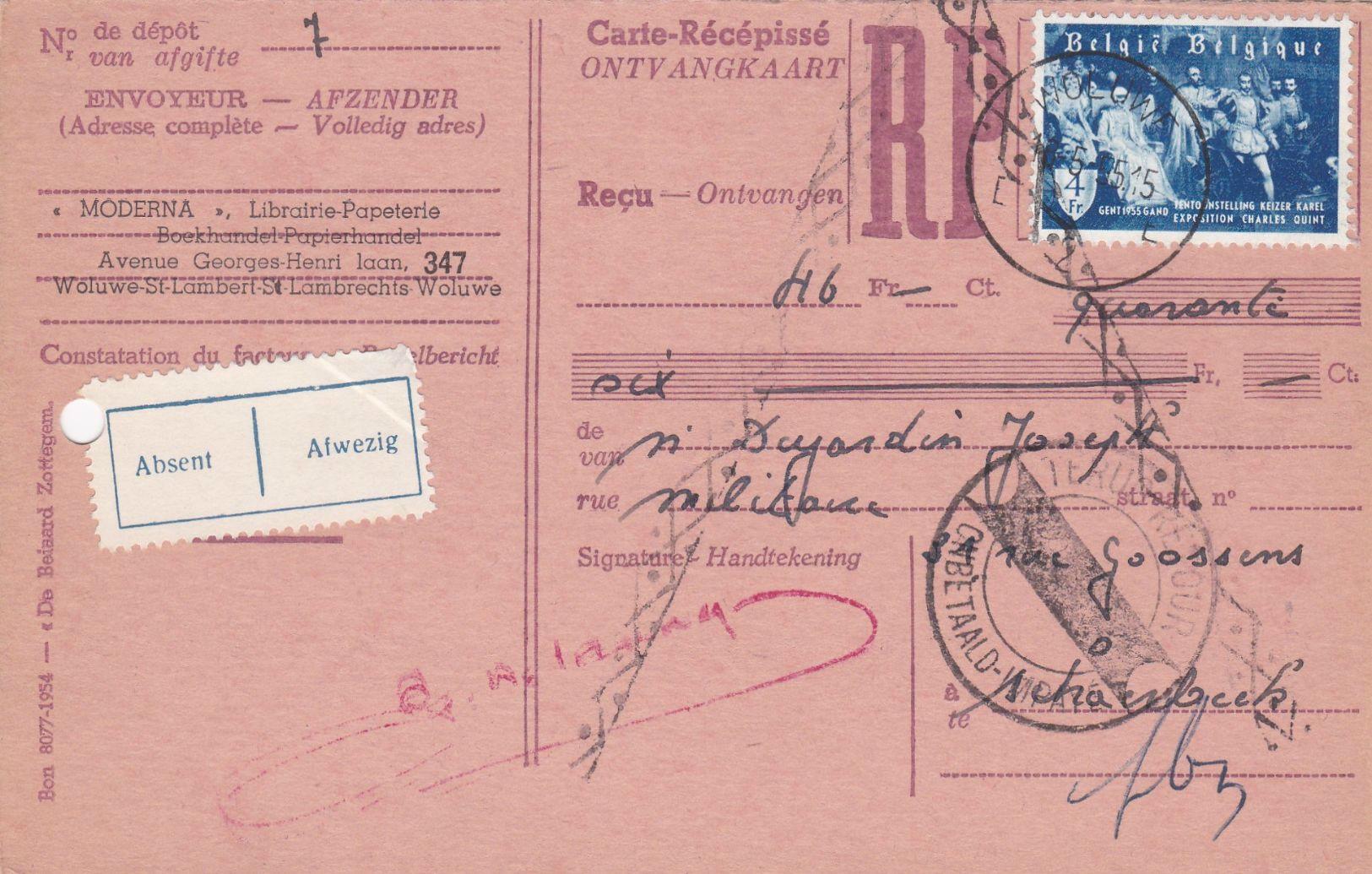 BACK TO THE BELGIUM ENTIRE 1955 YEAR STAMPS MENU