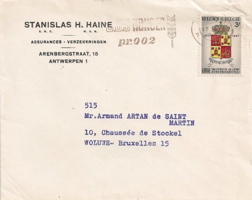 BACK TO THE BELGIUM ENTIRE 1967 YEAR STAMPS MENU