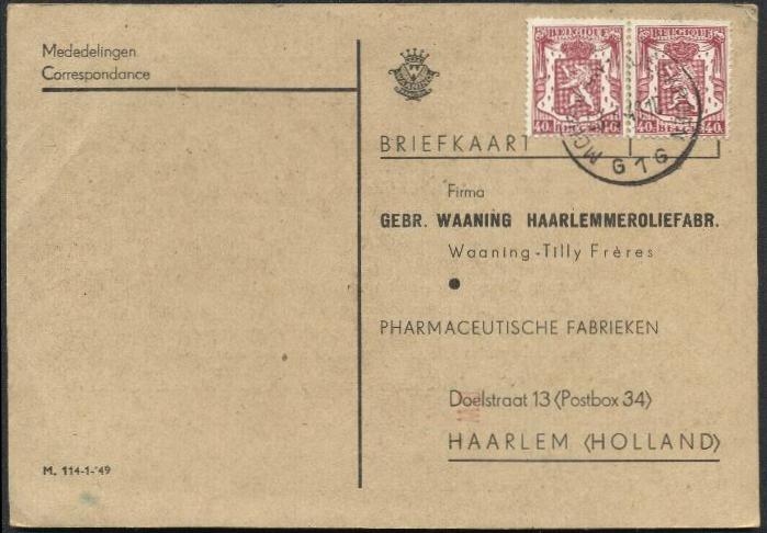 BACK TO BELGIAN 1926 - 1950 MAIL MENU